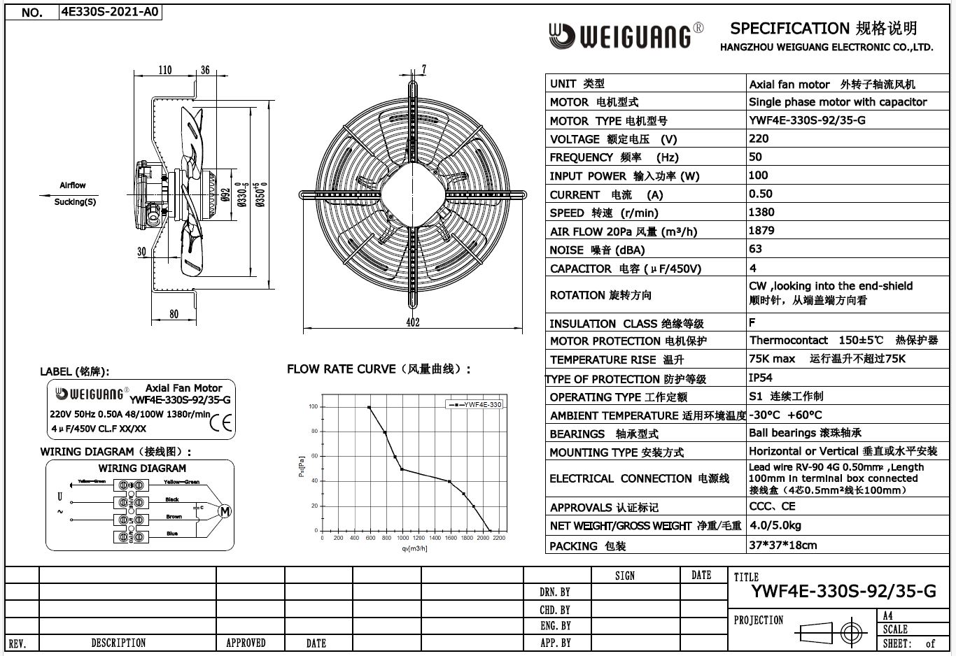 The Weiguang YWF4E-330S fan is a 330mm axial motor fan ideal for refrigeration, air conditioning and technical ventilation applications. With its 220-240V single-phase power supply, suction configuration and external rotor motor construction, it ensures reliable performance, small footprint and long service life. Perfect for cold rooms, evaporators, condensers and HVAC systems, it is a practical and efficient solution for air handling in professional settings.