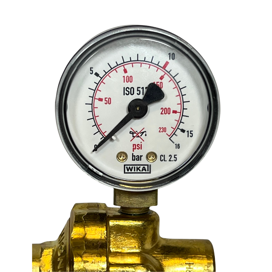 RIDUTTORE MIGNON AZOTO (MAX 10 bar) CON MANOMETRO BASSA PRESSIONE ATTACCO M10X1RH + RACCORDO 1/4″ SAE