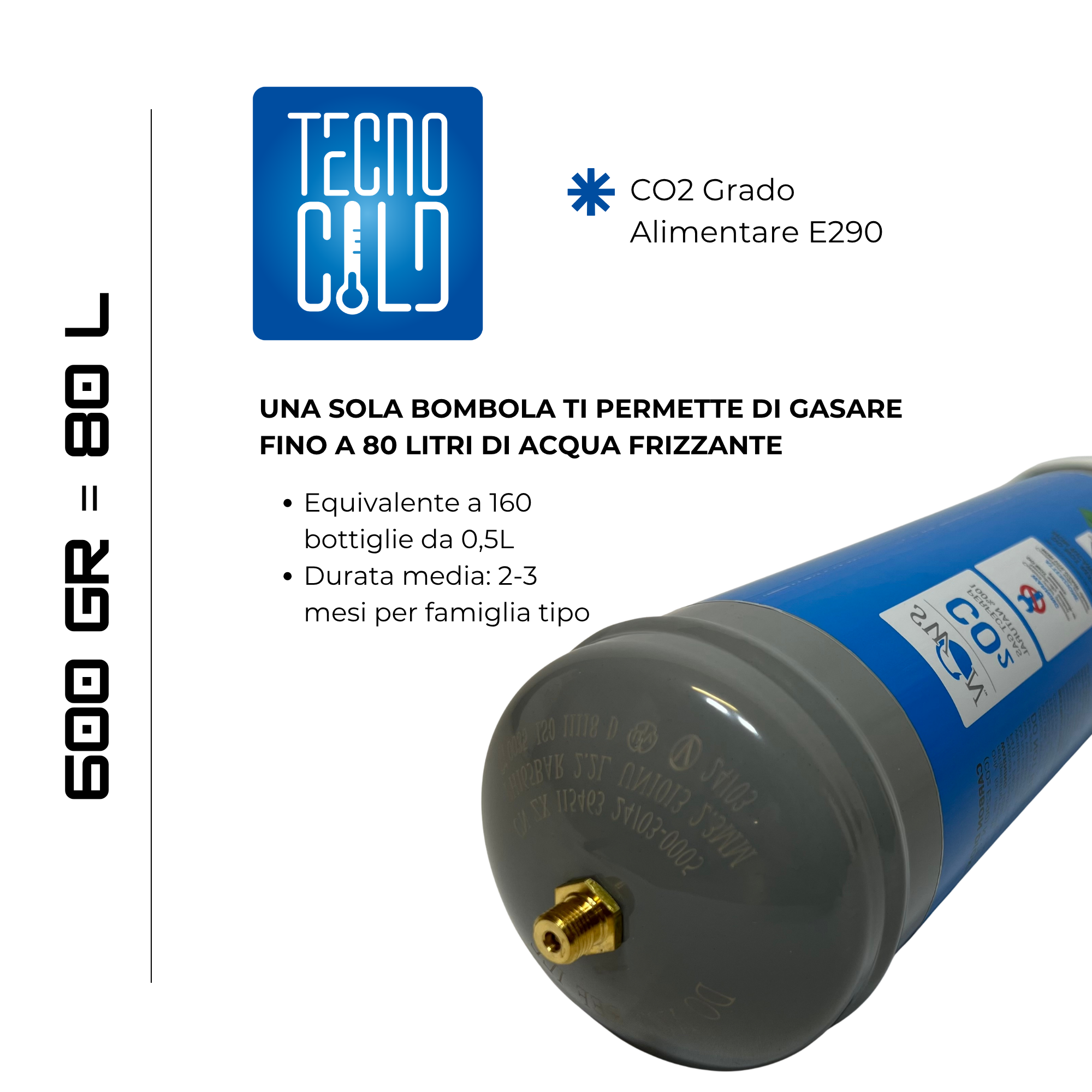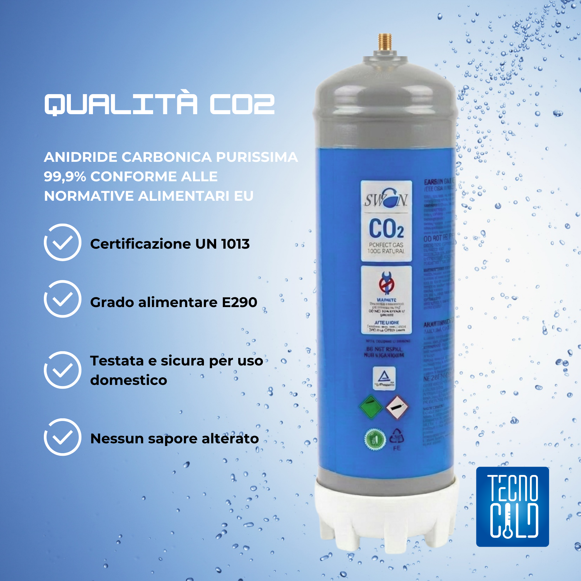 Permette di gasare acqua e bevande in modo pratico e veloce, garantendo anidride carbonica di qualità alimentare.