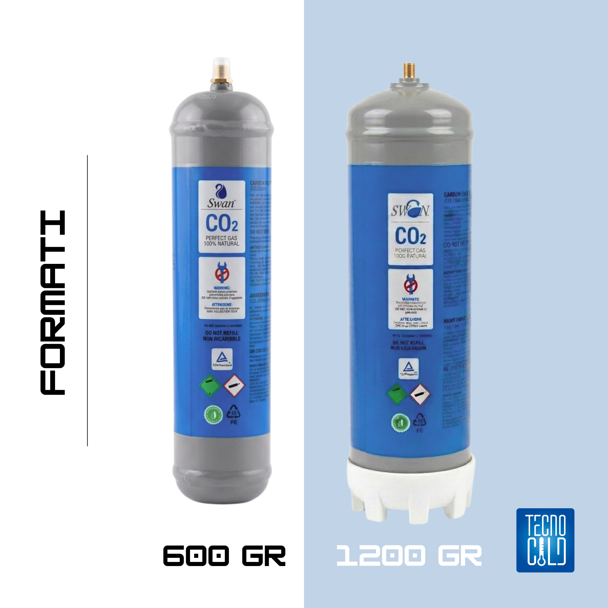 N. 2  BOMBOLE CO2 ALIMENTARE 1.200 gr. MONOUSO PER GASATORE ATTACCO M11x1 COMPLETE DI SUPPORTO IN PLASTICA