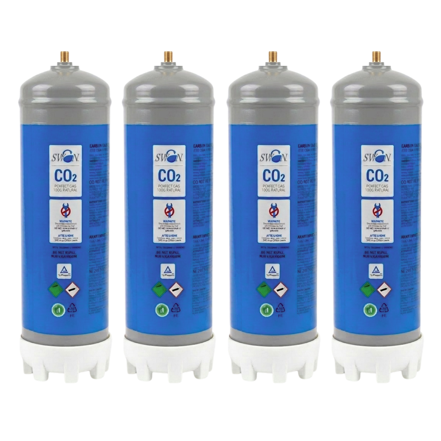 Kit di 4 bombole CO₂ alimentare da 1.200 g monouso per gasatori domestici, con attacco standard M11x1 per una connessione semplice e sicura.