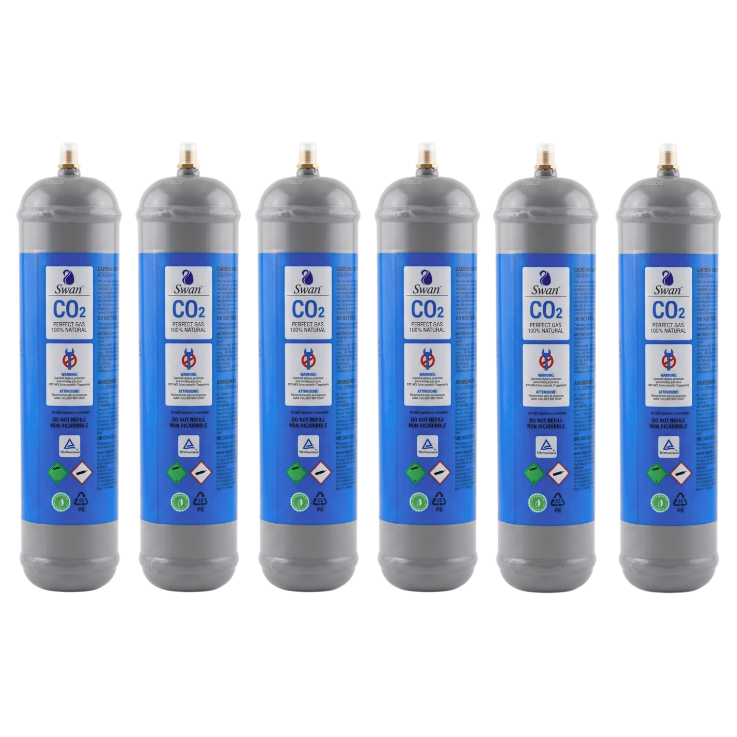 Kit di 6 bombole CO₂ alimentare da 600 g monouso per gasatori domestici, con attacco standard M11x1 per un collegamento rapido e sicuro.
