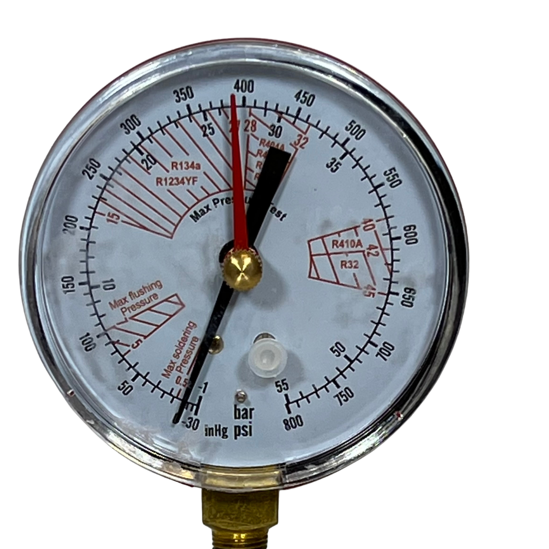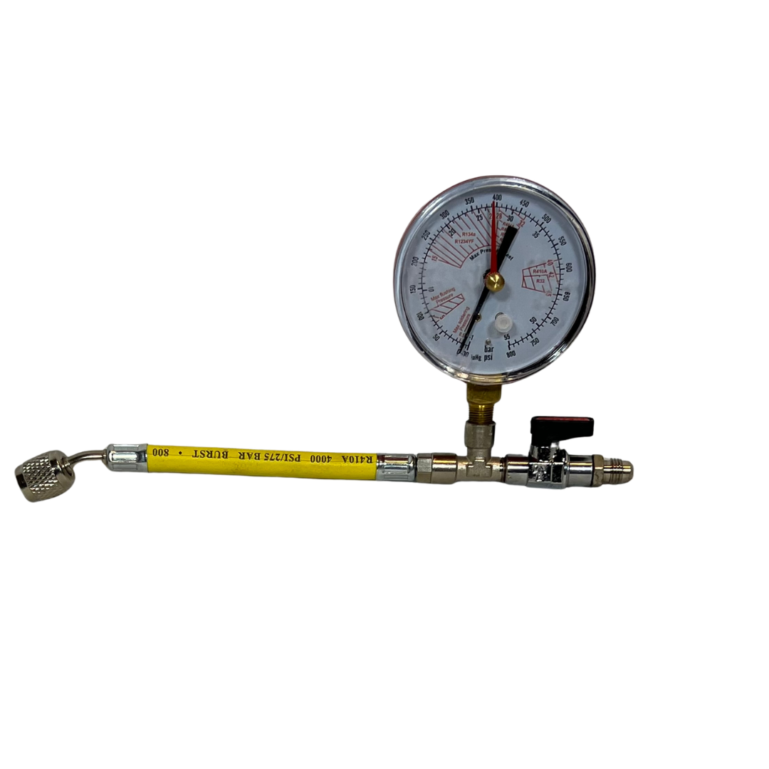 MANOMETRO AZOTO A SETTORI CON TUBO FLESSIBILE GIALLO E RUBINETTO 1/4'' M SAE