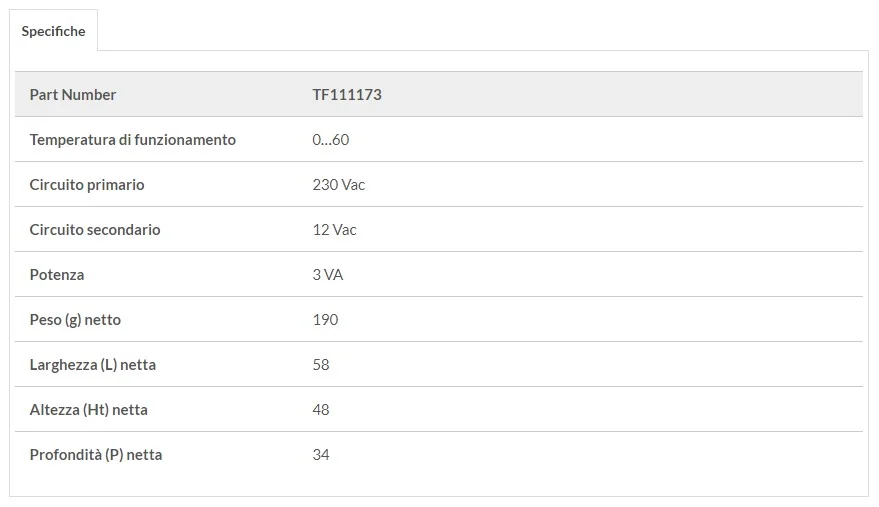 Questo trasformatore riduce la tensione di rete da 230 Volt a 12 Volt, rendendola adatta al funzionamento di piccoli componenti elettrici o elettronici. La potenza di 3VA lo rende indicato per applicazioni a basso assorbimento, dove è necessario alimentare comandi, schede elettroniche, termostati, centraline o altri dispositivi di controllo.