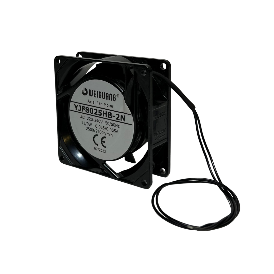 Ventilatore Weiguang 80x80x25 mm compatto e affidabile, ideale per il raffreddamento di dispositivi elettronici e quadri elettrici.